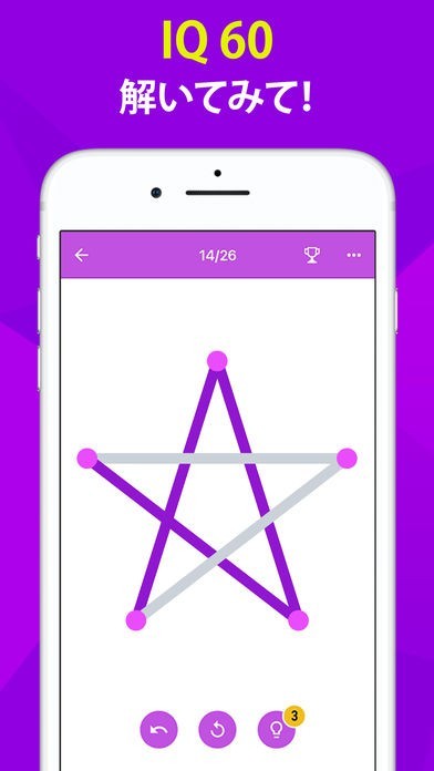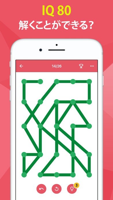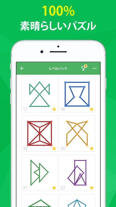 App Storeより引用One Line は、毎日楽しめる脳トレーニングです。ルールは簡単でも手強いゲーム。ワンタッチで、点と点を線でつなげよう。