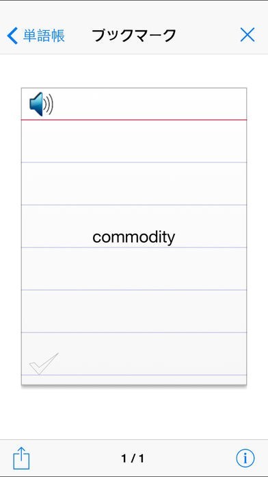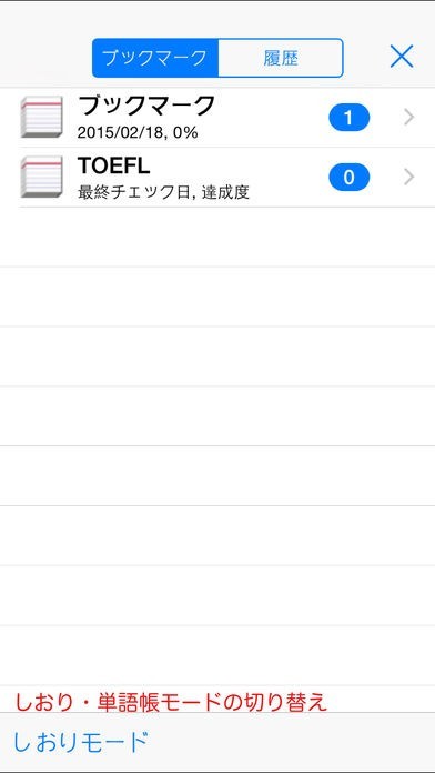 覚えにくい単語など、気になったものはブックマークして使うことが出来ます。また、それらの単語は、フォルダごとの単語帳に登録されるので、効率的に学習することが出来ます!