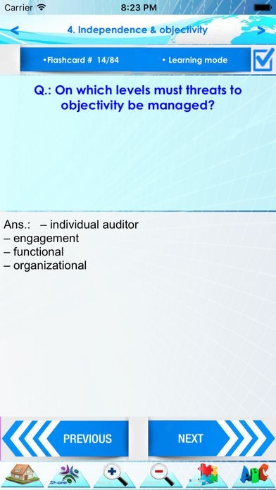 This app is a combination of sets, containing practice questions, study cards, terms & concepts for self learning & exam preparation on the topic of internal Auditing, Risk, governance & internal controls.