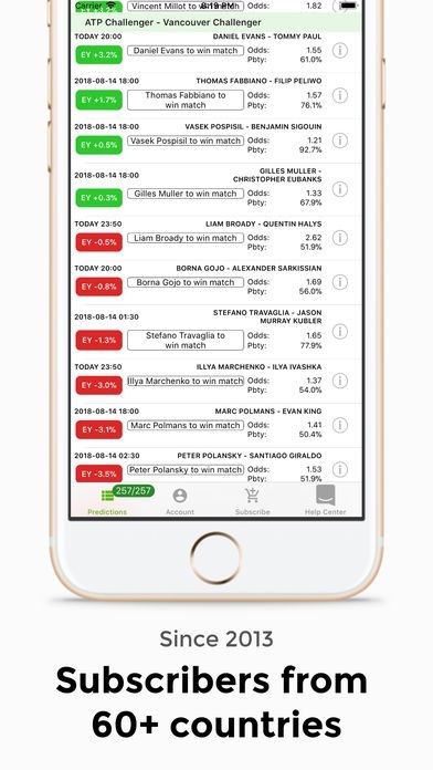 We analyze and predict 200-300 matches daily and automatically identify the best and most profitable tennis tips for you.