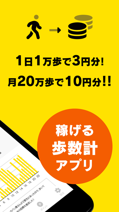 1日1万歩で3円分、月20万歩で10円分の投資資金が貯まります!