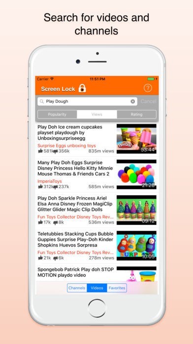 Select either a video or channel by pressing the selector at the bottom of the screen. Make your search in the search field at the top of the app and chose between the filters below.