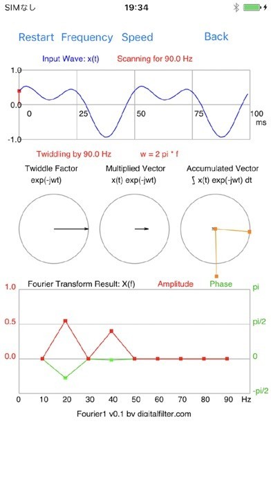 App Storeより引用「ディジタル信号処理」と聞くと難しい数式ばかりでとっつきにくいイメージがあると思います。本アプリはディジタル・フィルタやフーリエ変換などを視覚的、感覚的に分かって頂くために開発されました。スマートフォンをいじっているうちにディジタル信号処理が理解できてしまうような作品を目指し、随時アップデートされる予定です。