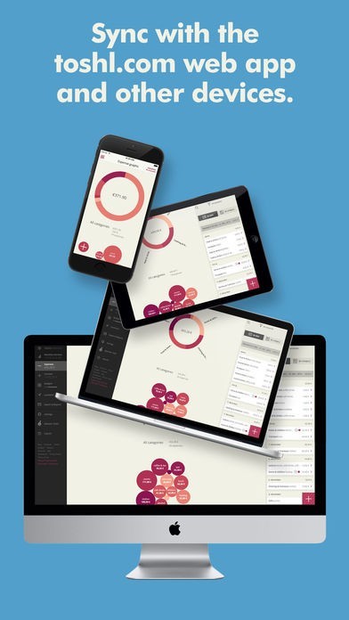 - open toshl.com on your laptop, desktop computer or tablet and use Toshl in comfort on a large screen