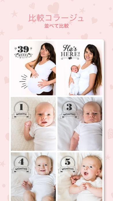 妊娠中の写真や生まれた赤ちゃんの写真を記録するフォトアプリです。妊娠から出産までの写真を保存しておけば妊娠期の体の変化の思い出になり、赤ちゃんの写真を保存しておけば成長していく様子を後で振り返って懐かしめます。 写真に文字を入れたりスタンプを押すこともできるので、思い出をより鮮烈に残すことができます。
