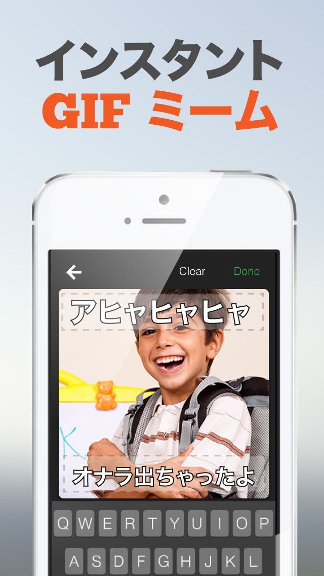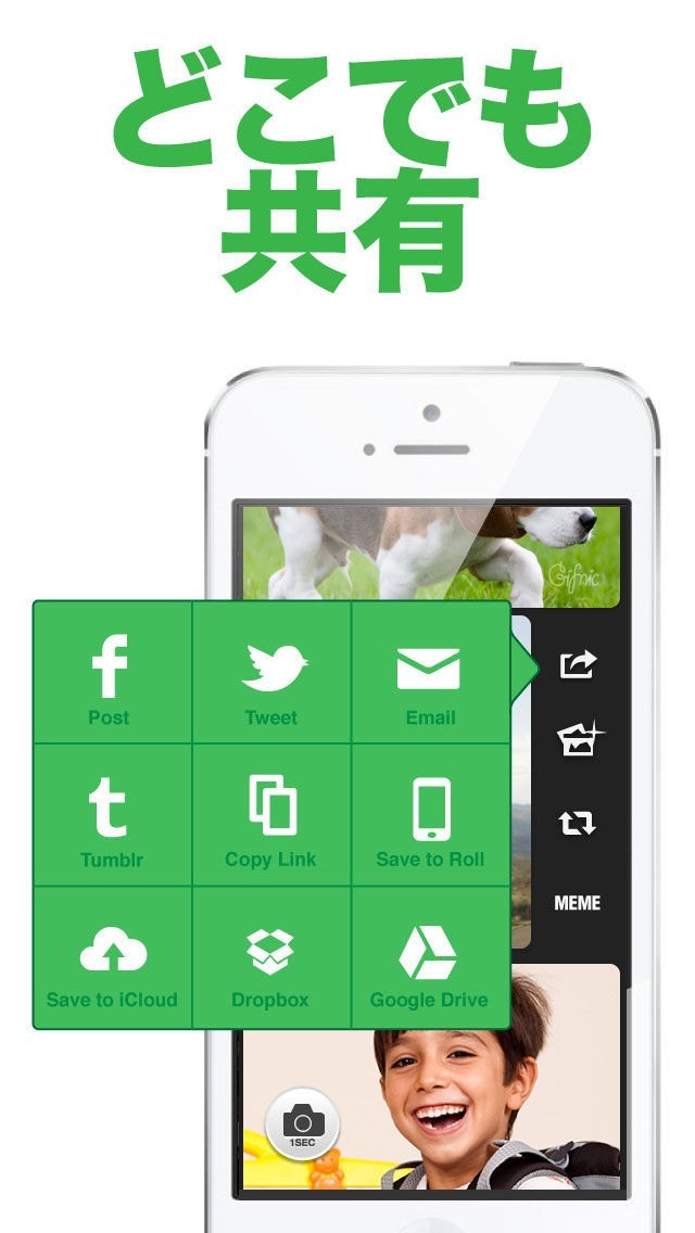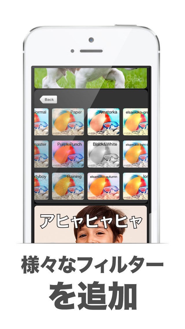 App Storeより引用ちょうど写真を撮るように面白いアニメGIFを撮影します。フィルターと面白い流行り言葉を追加して友達と共有!