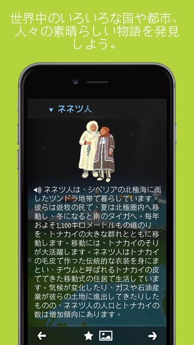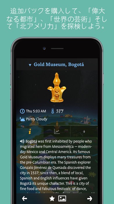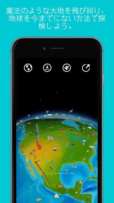 iPhoneでさまざまな情報が詰まっているインタラクティブ3D地球儀を利用することができるようになっているので、楽しみながら世界について勉強することができます。