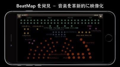 曲を再生中に、オーケストラのどの楽器が音色を奏でているか、いつ休んでいるかを表した画面もあるので、この有名なクラシック音楽に対応するための練習ツールとして最適です。