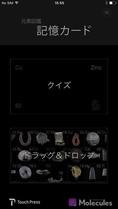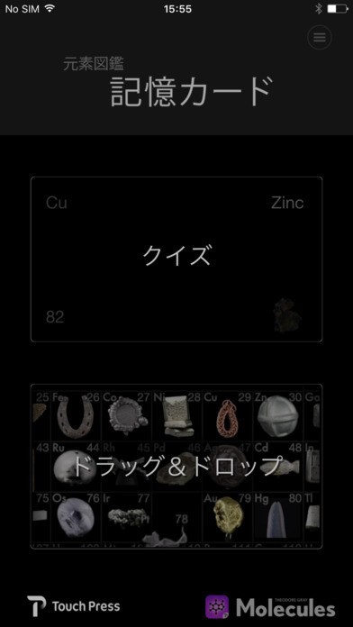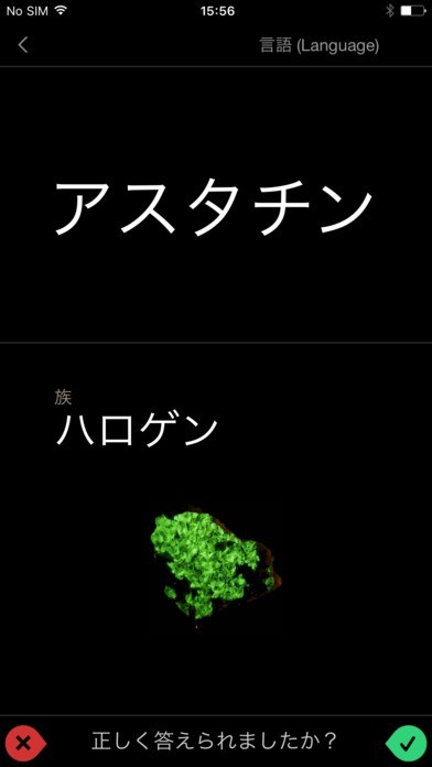アプリには元素の画像が付いており、視覚から元素を理解することができます。理解度チェックのため、画像を見て元素を言い当ててみましょう。今までよりも元素が覚えやすくなるはずです。