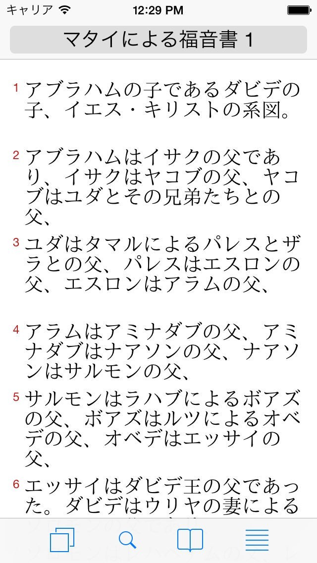 「対訳聖書(新約)」は1955年版の口語訳聖書、WEB、BBE、KJVを搭載した聖書アプリで、横画面や自動スクロールなどの機能も利用できます。2言語同時表示に対応しているため、海外の方と2人で聖書を読む際に活用してみるのも良いでしょう。また、ブックマークや聖書内語句の検索機能も備えており、旅行先のホテルに聖書が置かれていない、または持ってこれなかったなどのときにも簡単操作で続きが読めます。書籍の場合は文字の大きさに左右されますが、アプリ版であればフォントサイズの調整に対応しているため、老眼鏡やルーペを持ち歩かずに済みます。さらにノート編集機能がありますので、気になる語句を見つけたときはメモ代わりとしても活用可能です。