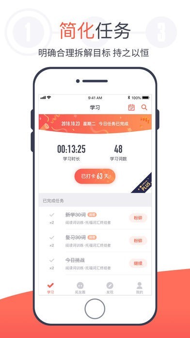 拓团激励帮你坚持不懈的学习,任务完成后还可以在挑战榜上大放异彩。单词英雄、口语营、毅力赛……多种多样的活动模式让英语学习之路不再枯燥单一,还不快来一探究竟!