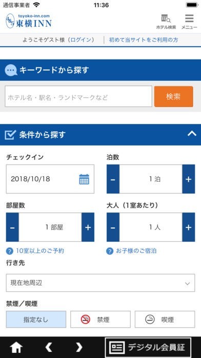 ホテル東横INN(東横イン)公式アプリのスクリーンショット