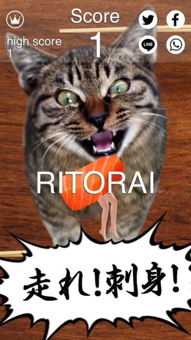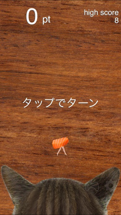 刺身となってお腹を空かせた猫から逃げるランゲームです。主人公は足が生えた刺身という、なんとも奇妙な出で立ちです。その奇妙に生えた足を巧みに使って、迫り来る猫の魔の手から逃げ回りましょう。刺身は二足歩行が慣れないのか、斜めにしか進むことができません。障害物となる割り箸や壁に激突してしまうとゲームオーバーになるので、上手く避けて前進しましょう。普段は可愛らしい猫も獲物を目の前にすると野生の本能で追いかけてくるので、手に汗握る狩られる恐怖を味わうことができます。操作はタップで左右移動するだけの簡単な操作なので、通勤・通学の合間にサクッと遊ぶことができます。