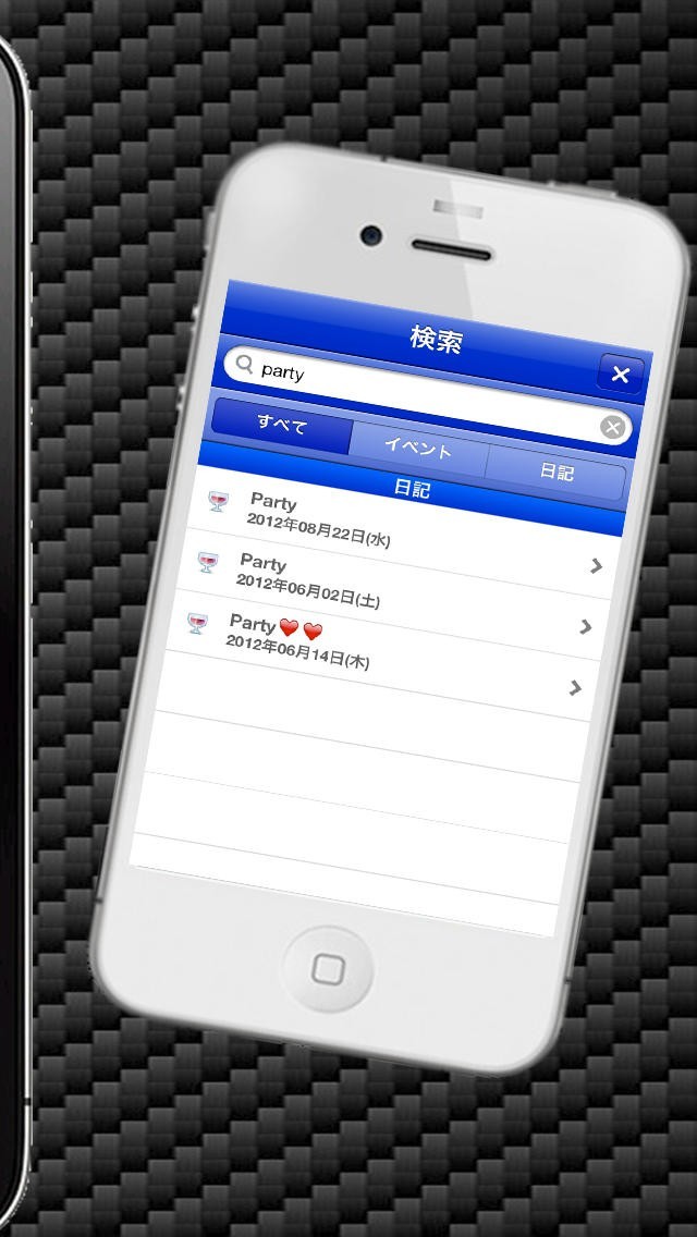 ・予定やイベント、日記をフリーワードで検索ができます。