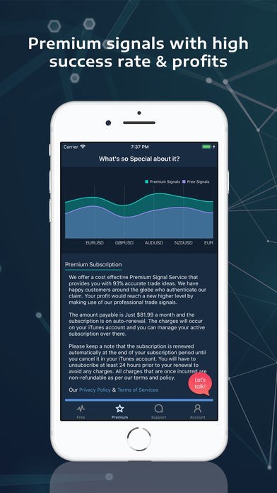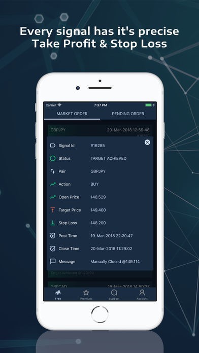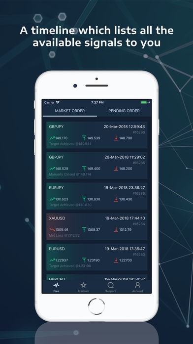App Storeより引用Forex signals are widely used by traders all over the world. The real and most important role of trade signals is to assist a trader in deciding whether to Buy or Sell. Follow our real-time trade signals on your charts to get benefited from your decisions.