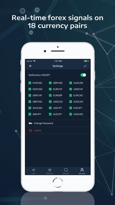 • Live signals on 18 currency pairs.