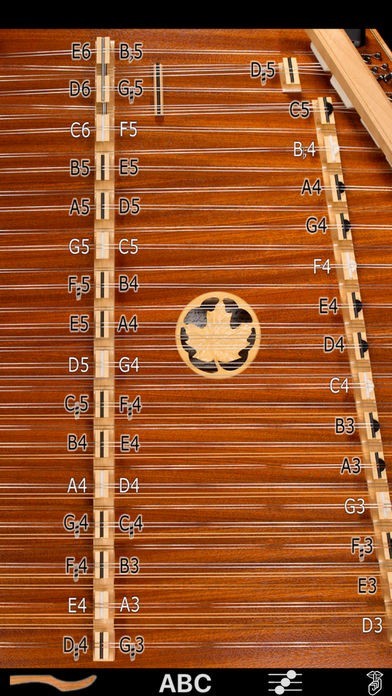 Toggle between a bright, clear ringing tone using hard hammers and a gentler, more piano tone using soft hammers by touching the image of the hammer in the upper left corner.