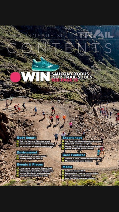 App Storeより引用Blaze your own adventure... Discover trail running in South Africa as well as exotic destinations globally through TRAIL magazine, published four times annually.