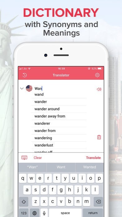 110か国以上を網羅していて、単語やフレーズを入力するだけで素早く他の言語に翻訳出来るようになっています。音声翻訳に対応しているので、現地の人ともスムーズに会話出来ますね。