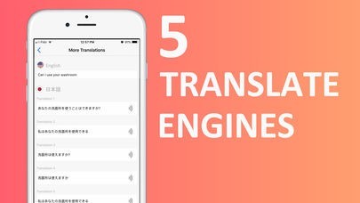 The world's first voice translator with 5 translate engines integrated. You can simply tap to choose the best translation from the five translations and switch the default translate engine. Absolutely Voice Translator - Alive will always give you the most accurate translations than other apps.