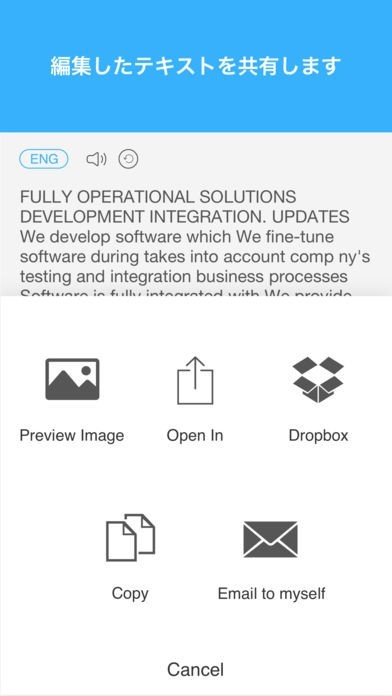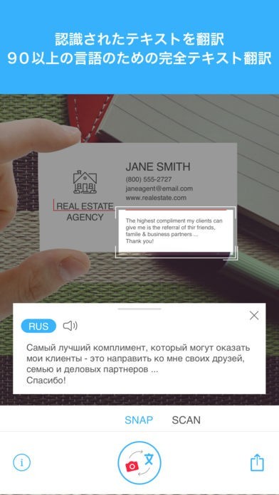 『スキャナ&翻訳を - 画像内の文字をテキストに変換して90ヶ国以上の言語に翻訳します』は、印刷された色んなソースから原本を表してくれます。書籍・文献・解説書・署名のサービスを自由に使えます。90ヶ国の語句の中で、上記のサービスをその場で直ぐに訳せます。原典の画像を撮影し記録された後へと素早く編集出来ます。詳しく聞いたり、分かりやすく翻訳出来ます。TwitterやFacebookなどを介して、いつでも簡単に共同使用出来ます。
