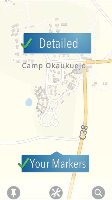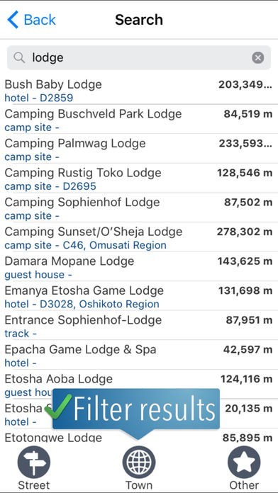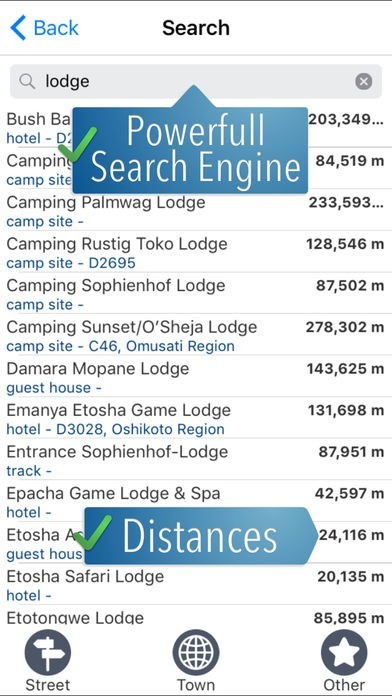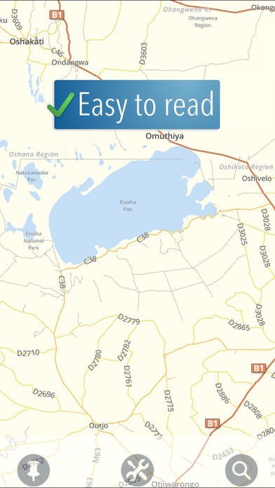 App Storeより引用Etosha Travelmapp provides a detailed map of the Etosha national park. The Travelmapp works 100% without internet connection, no charges for data.The Travelmapp search engine lets you find thousands street names, towns, points of interest etc.