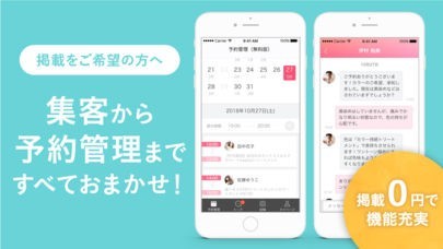 * 事前の相談ごとや、施術の仕上がりイメージ写真をかんたんに共有できるトーク機能搭載!急な予定変更による日時変更やキャンセルもこれ一つでOK!煩わしい電話でのやり取りも不要です。