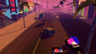 「PAKO2」はプレイヤーが強盗の逃走車を操って、パトカーに捕まらないように逃げ回りながら仲間を目的地まで送り届けるアクションレーシングゲームアプリです。パトカーから逃げきることで報酬を手に入れることができるようになっていて、報酬を使って逃走用の新しい車や新ステージを開放することができるようになっています。