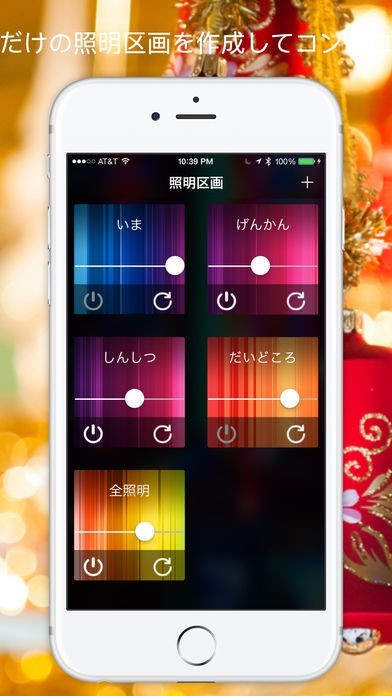 * 照明区画は最高で 16 種類作成可能(例、キッチン、寝室、玄関、リビングなど…)。