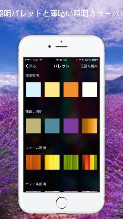 App Storeより引用無料の標準照明パレットと薄暗い照明カラーパレットを内蔵