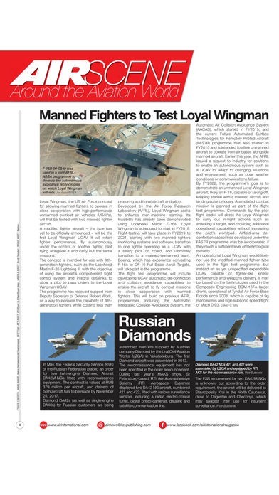Over the years, AIR International has established an unrivalled reputation for authoritative reporting across the full spectrum of aviation subjects. With more pages than ever, all still dedicated to commercial and military aviation, we have correspondents and top aviation writers from around the world, offering exciting news, features and stunning photography in each monthly issue. We've also introduced something different on the back pages; sections dedicated to commercial helicopters, business and commercial aviation.