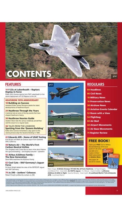 As Britain’s longest established monthly aviation journal, Aviation News is renowned for providing the best coverage of every branch of aviation. Each issue has the latest news and in-depth features, plus first-hand accounts from pilots putting you in the cockpit and illustrated with the very best photography. Covering both modern military and civil aircraft as well as classic types from yesteryear, Aviation News covers subjects from World War Two, through the Cold War years to present day and beyond.