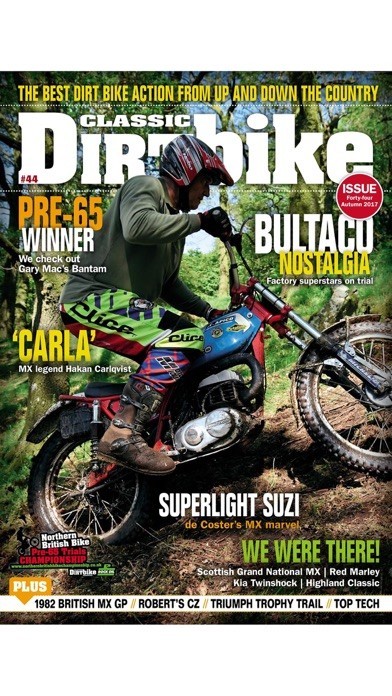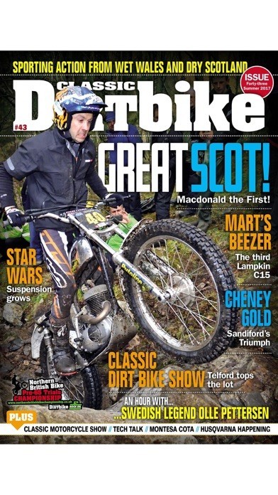 App Storeより引用Classic Dirt Bike is THE place to catch up on all that’s good in the off-road world. Covering trials, scrambles and enduros from the most evocative era of motorcycle sport with solos and sidecars represented. Going from the British dominance of the late 50s to the big bucks Japanese teams of the 80s the eclectic mix of machinery takes in both two and four strokes. Best of all, the bikes featured are raced, trialled and enduro’d by their owners as the classic sporting scene happens every weekend. Inside Classic Dirt Bike you’ll find people features as we catch up with the stars of then and now, regular columns by British and world champions, technical features on rebuilds, event reports as CDB gets into the thick of the action for the full story from all over the world by people who ride. If it’s classic and off-road then it’s in Classic Dirt Bike.