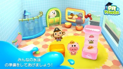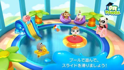 Dr. Pandaのプールに飛び込んで、5匹のかわいい動物の赤ちゃんと遊びましょう!用意されているプールは3つ。そして、面倒をみてあげなければいけない動 物は5匹います。ロッカールームで着せ替えをしたり、プールサイドでお菓子を食べたり、ウォータースライドを滑ったり、海賊船から飛び込んで沈んでいる宝 をさがしたりと、いろいろな遊びを楽しむことができます!