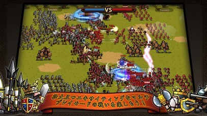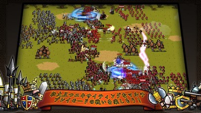 「タイニー軍団」は1000人以上の軍隊を指揮して戦うゲームです。小さな騎兵や歩兵がワラワラ動く団体戦が楽しめます。戦略や兵士の配置を考えることがが勝利への第一歩。ステージの違いやアイテムの使用で、変化する戦況に対応して兵を動かしましょう。兵士は自由に育てることができますし、優秀な戦士を外部から雇うことが可能なので、最初は弱かった自軍もどんどん強化できます。400以上のステージで遊ぶことができますし、オンラインでの戦いも可能です。