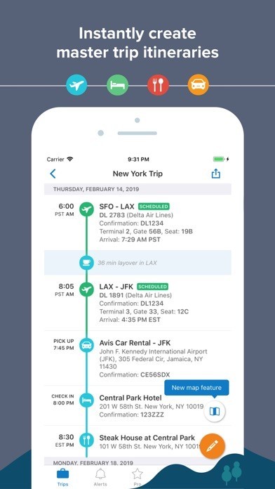 ユーザーがアプリでホテルや飛行機などの予約を入れると、その情報を元に自動でおすすめの旅行プランを提示してくれます。観光地やレストラン、交通情報などが一瞬でわかるので、多くの手間を省くことができます。
