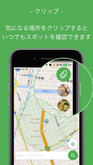 検索して今回は行かなかったけれど気になっているお店やスポットをクリップ機能で保存しておく事ができその場所が近くなった時に通知して知らせてくれるから忘れてしまっても思い出す事ができます。