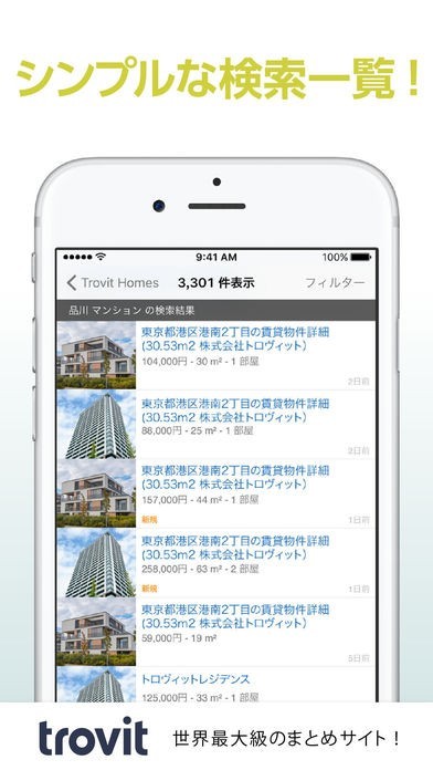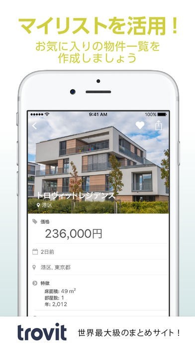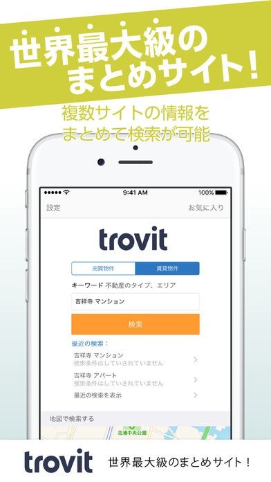 App Storeより引用トロビットホームズは様々なウェブサイトから多くのマンション、アパート、一戸建ての賃貸・売買情報を集約しています。よって今まで知ることができなかった、よりあなたに合った住まいを簡単に見つけることができるでしょう。