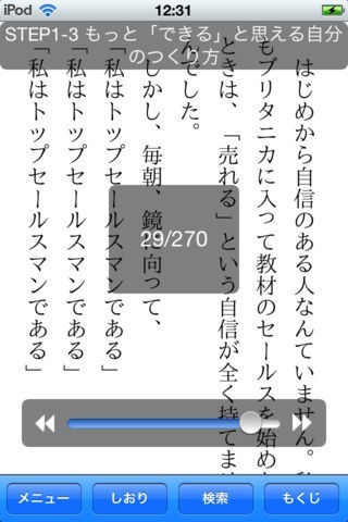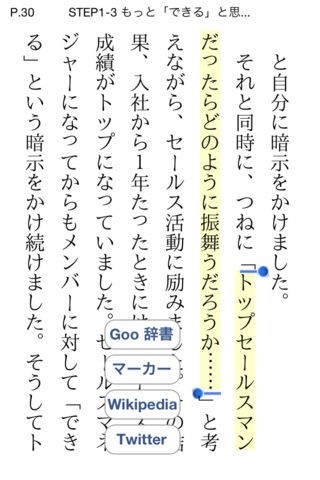 ※本アプリは画面の下端をタップしてページをめくるタップ式です。また、画面中央をタップするとメニュー画面や目次、検索機能が開きます。