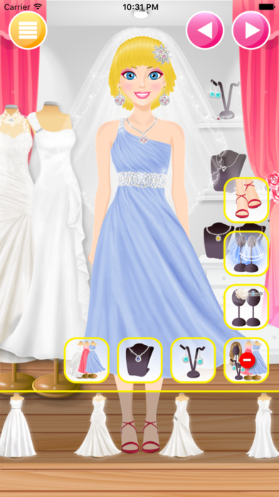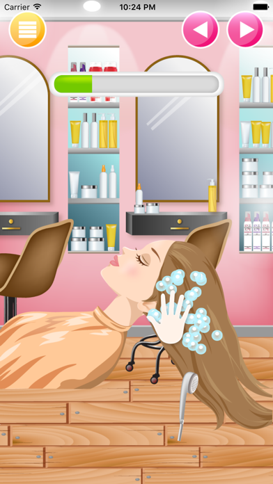 「ウェディングサロン - ヘアサロン」は花嫁の準備を手伝って飾りあげていくシミュレーションゲームです。ドラッグやタップで操作していきます。 まず髪を洗う所から始まります。メイクをしてウエディングドレスを選びます。髪を巻いて見たり、カットしてみたりアレンジしてみましょう。