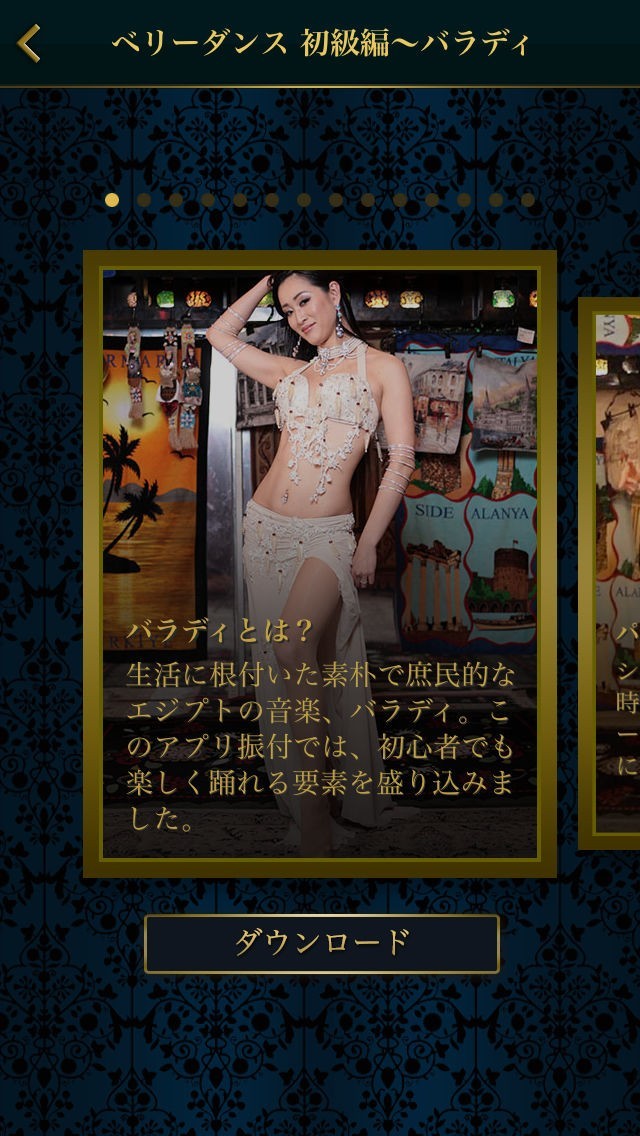 ベリーダンスにはいくつかのスタイルが存在しますが、このアプリではエジプシャンスタイルのベリーダンスをトレーニングできます。ウォーミングアップや基本的な姿勢からレッスンはスタートするので、初心者でも簡単に始めることができます。