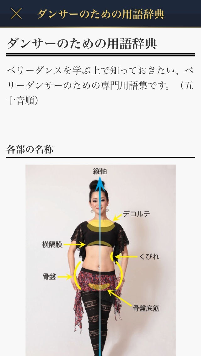 日本ではあまり習える場所がそこまで多くはないベリーダンスをスマートフォンで習うことができるようになります。 習い始める前に用語を解説してくれるので、何を言っているのか理解できないということはありません。 また、段階別に学習することが出来るので、初心者の方でも安心して利用することが出来ます。 加えて、ダウンロードした動画を見て学べるので、地下鉄など、電波が届かない場所でも問題はありませんし、動画を真似るように動くことによって上達するようになっているので、お部屋などで同じ動きをしてみましょう。