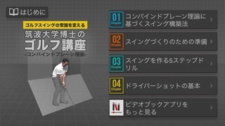 このアプリは、研究に研究をかさねた、大ボリュームの教材が入っています。収録内容は、すべてゴルフに関する説や、新しい方法などを記したり、動画になっていたりします。
