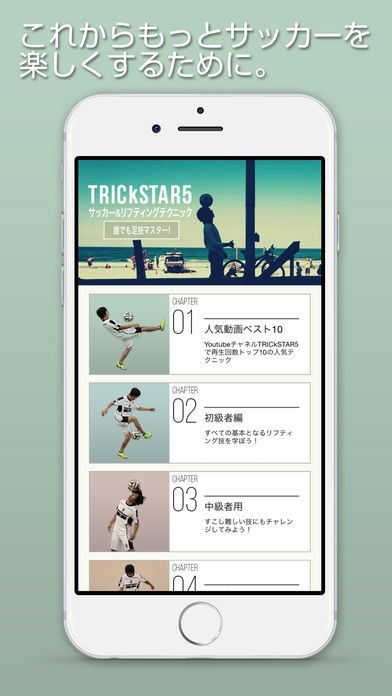 「TRICkSTAR5 サッカー&リフティングテクニック」はYouTubeで2900万回以上再生された人気のリフティングテクニック動画をスマートフォンで視聴することができるアプリになります。初心者から上級者まで楽しめるように幅広いテクニック動画を収録していて、各テクニックには解説動画がつけられています。
