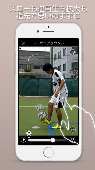 スロー再生や逆再生、コマ送りなど、多彩な再生機能を搭載しているので、スピーディーなリフティングテクニック動画でもじっくりと確認して分析することが可能となっています。