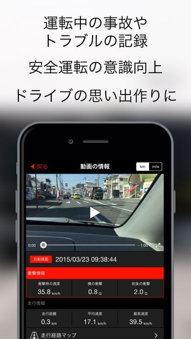 車に普段はあまり乗らないので本格的なドライブレコーダーの購入を迷ってしまっているという人は『マルチドライブレコーダ2』でスマホがドライブレコーダーになるので使い勝手を知ることができます。