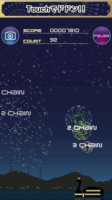 打ち上がる花火玉にタッチする反射系アクションゲーム Touchでドドン!! - 無料花火ゲーム