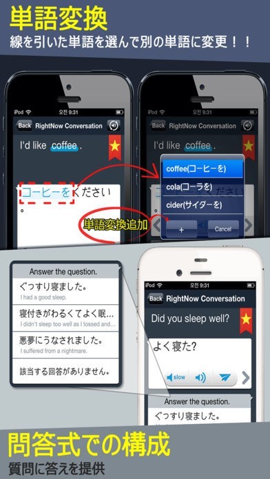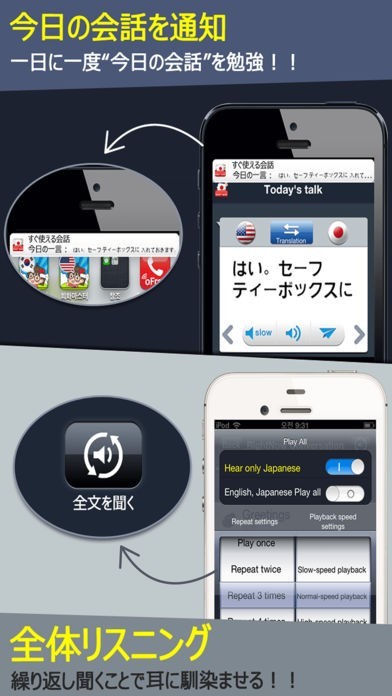 音声再生も可能!状況別会話機能でシチュエーションに合わせた会話ができる!