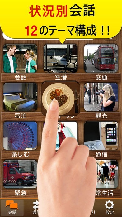 実際に海外で会話をするときに、話している内容を全てアプリなどを使って翻訳するのは大変だと思います。しかしこのアプリではさまざまな状況に合わせたフレーズがあらかじめ搭載されているので、基本な会話はすぐにできるようになっています。