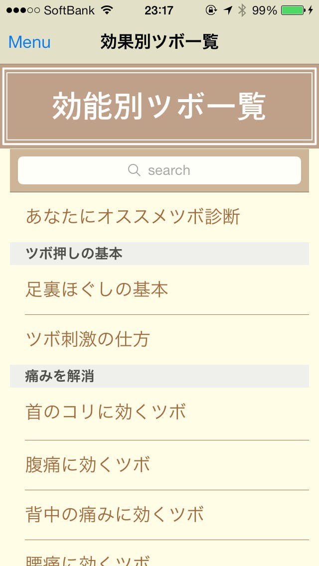 合計で46の効果を感じることが出来るツボを教えてくれるアプリ